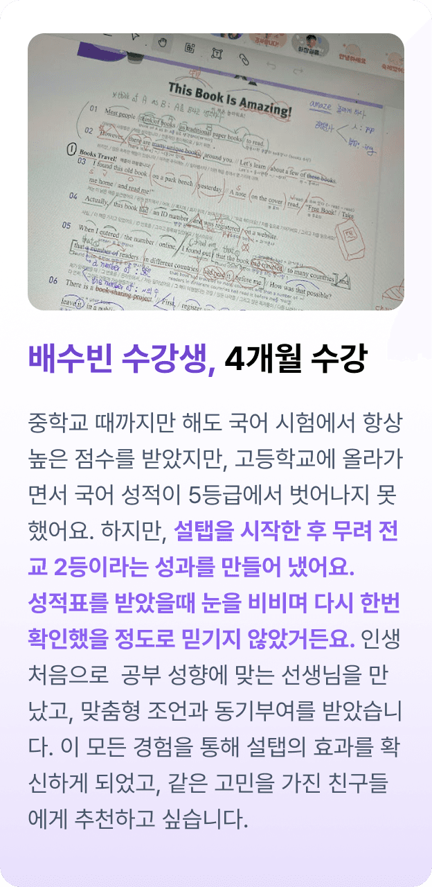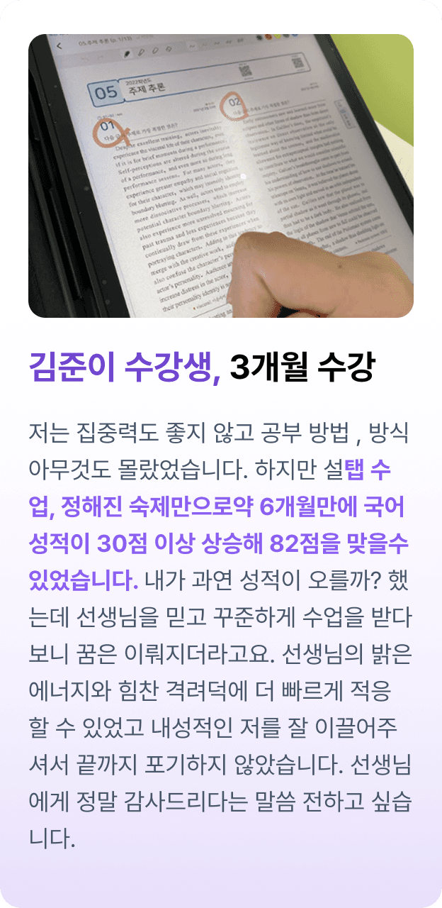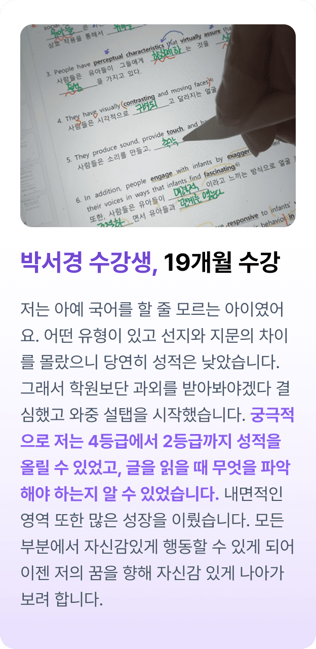 지문 해석 방법을 1:1로 훈련해 드려요!