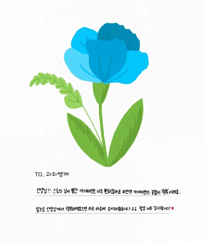 스승의날 학생이 윤희 쌤에게 보낸 ‘설탭 스승의날 이벤트’ 메시지와 그림