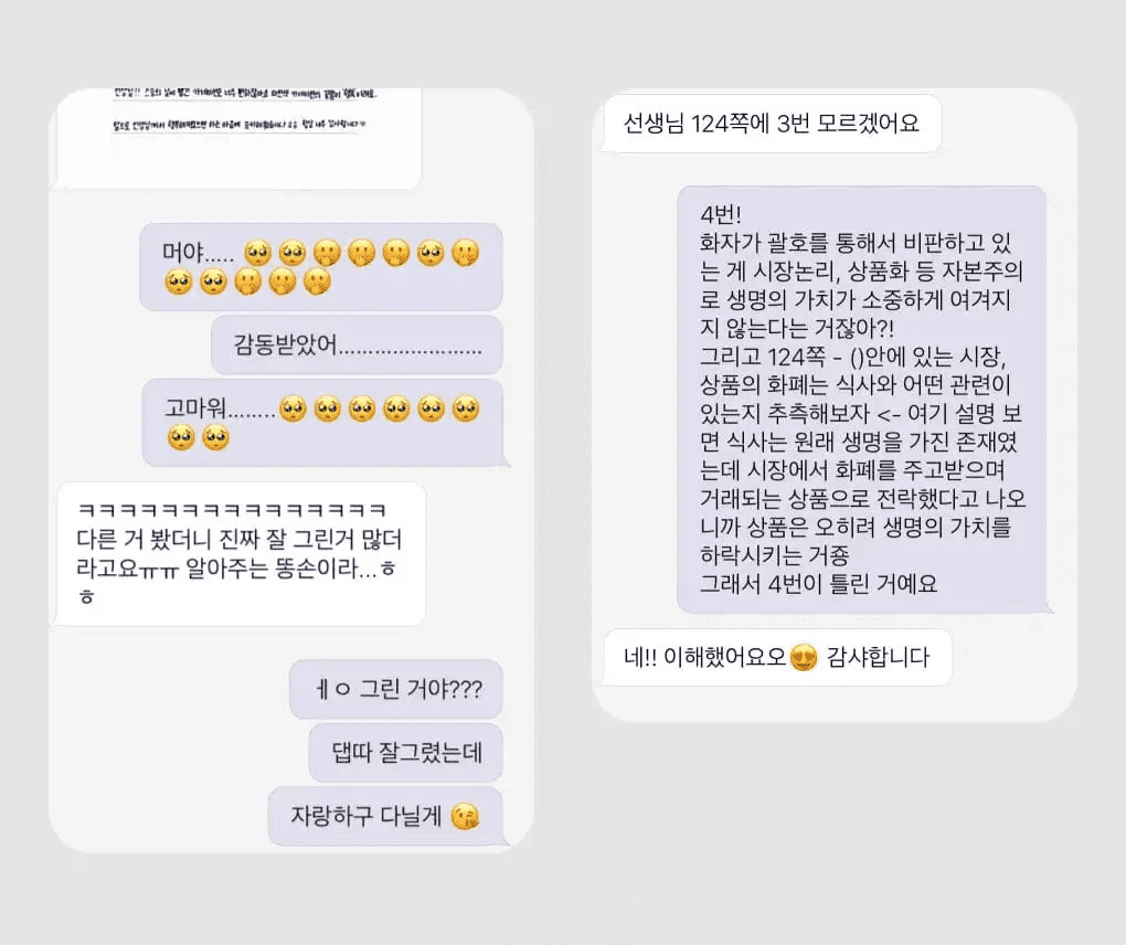 제 수업이 모든 학생에게 유효한 방식은 아닐 수 있다고 생각해요. 하지만 여러 가지 여건상 학원이나 과외 선생님을 만나기 힘든 아이들에게 제가 도움을 줄 수 있다는 점, 조그마한 변화라도 이끌어낼 수 있다는 점만으로도 제가 설탭을 계속할 이유는 충분한 것 같아요. 앞으로도 저를 선생님이라 불러주는 학생들에게 걸맞는 영향을 줄 수 있도록 제 최선을 다해보고자 해요.